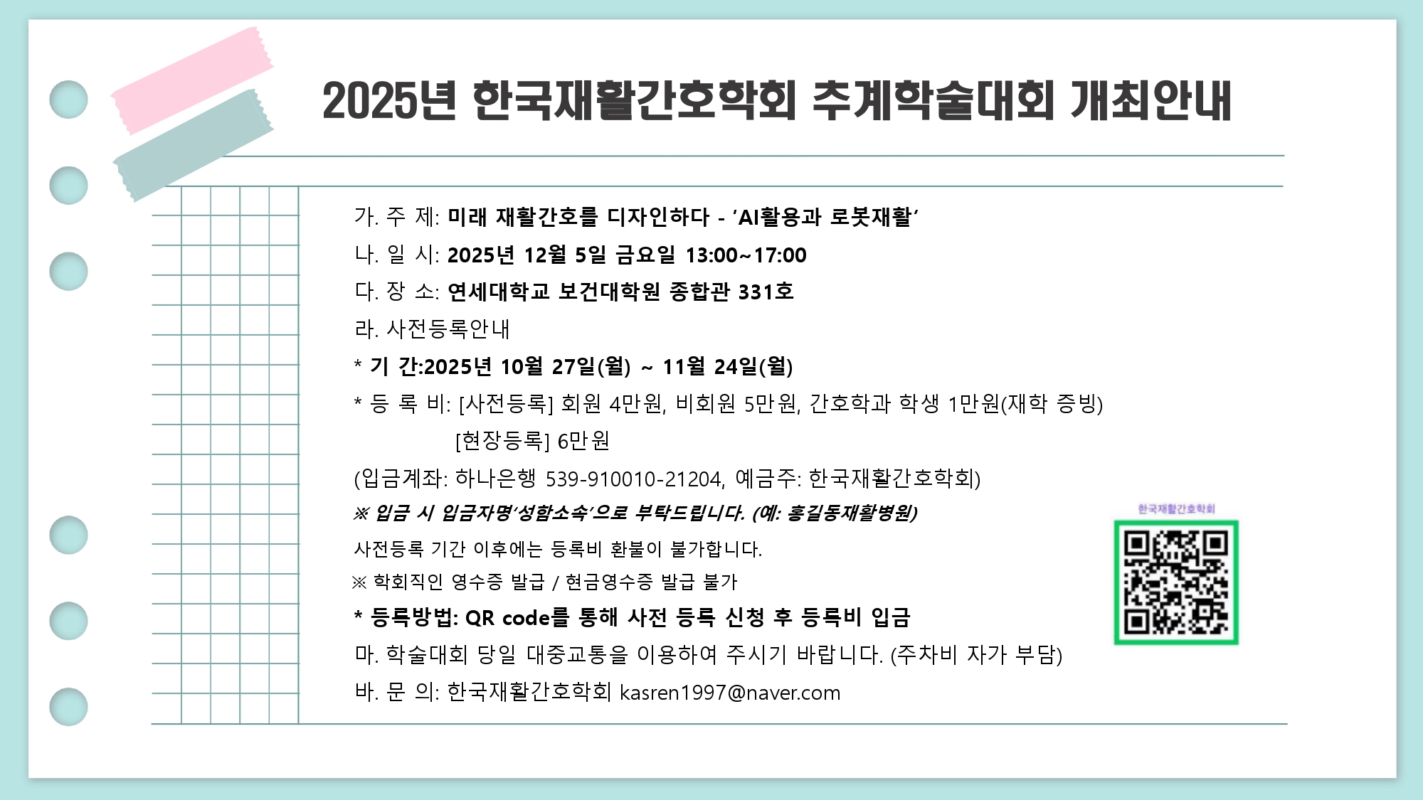 2025년 한국재활간호학회 춘계학술대회 개최안내